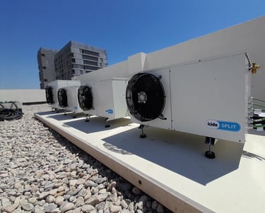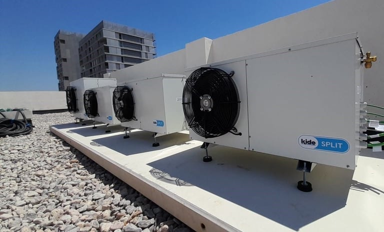 Realizamos todo tipo de instalaciones de frio para el sector industrial como son camaras refrigeradas, camaras de congelados, salas de elaboracion, mortuorios, sistemas centralizados para supermercados, camaras de maduracion, celulas de abatamiento y cavas de vinos. Trabajamos las mejores marcas para garantizar el mejor acabado y la mayor durabilidad, empleando gases respetuosos con el medioambiente